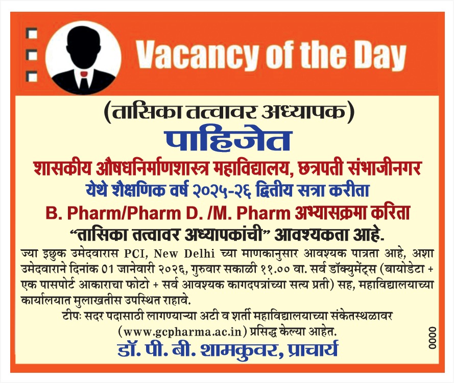 I am honored to welcome you to Government college of Pharmacy, Chhatrapati Sambhaji Nagar a venture of Government of Maharashtra, established in 1996 with a futuristic vision to provide qualitative education by applying innovation and dynamic pedagogical techniques. Since inception, the institute has focused on providing health care services with dedication and commitment. The institutes vision and mission are reflected in its faculty, staff, student and alumni. We cater to the local/regional needs in synergy to University-level education and by large to the social and economic development of the region. The institute has well-deserved reputation for offering high quality programs at both undergraduate and post graduate levels. The team of dedicated and committed faculty maintains the quality of instruction. The B. Pharm., M. Pharm. course in Pharmaceutics and Pharmaceutical chemistry, Pharm. D. and Ph. D. program stand testimony to endeavors of the institution. At present college library has approximately 4036 text and reference books, worth Rs. 45 Lakhs, covering a wide area of knowledge. Eight international and 22 National and 7 International Journals are subscribed presently as hard copy or Internet editions. The institutes beautiful and serene campus are conducive to create a peaceful learning atmosphere. The building is a home of well equipped library, departments, state of the art resources, analytical instrumentation facilities, industrial pharmacy setup, industrial collaboration for research and training reflecting academic growth. The upgrading of classrooms, lecturing facilities and specialist laboratories, indoor and outdoor sports, recreation facilities and administrative functions towards e-governance are a part of ongoing venture. We strongly believe that exposure is the key in shaping personalities and the faculty of the institute is constantly striving for transforming students to meet the challenges in the profession. The concept of mentoring introduced to trail the progress of students and counseling has strengthened the bond of faculty, parents and students. The institute has proved to be a fountain of high values and principles and a dedicated specialized place of learning and practice. We are proud to notify that our students constantly earn accolades for their work. Our alumni stand as a testimony to our accomplishments.